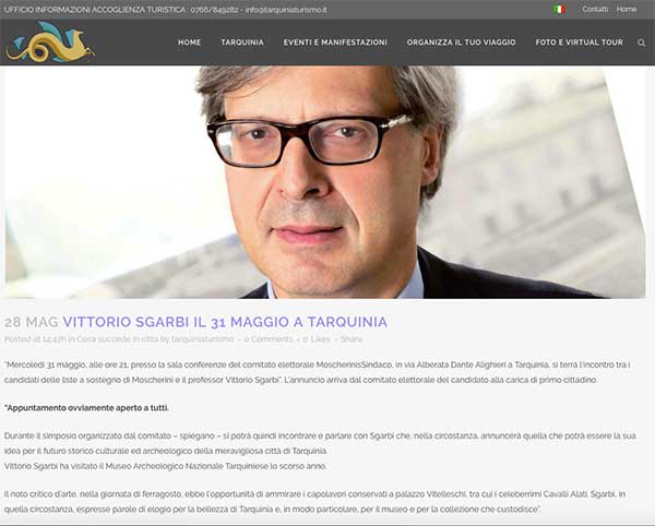 (f.e.) L’arrivo di Vittorio Sgarbi a Tarquinia per sostenere la candidatura di Gianni Moscherini finisce sul sito dell’Ufficio informazioni turistiche del Comune di Tarquinia.
