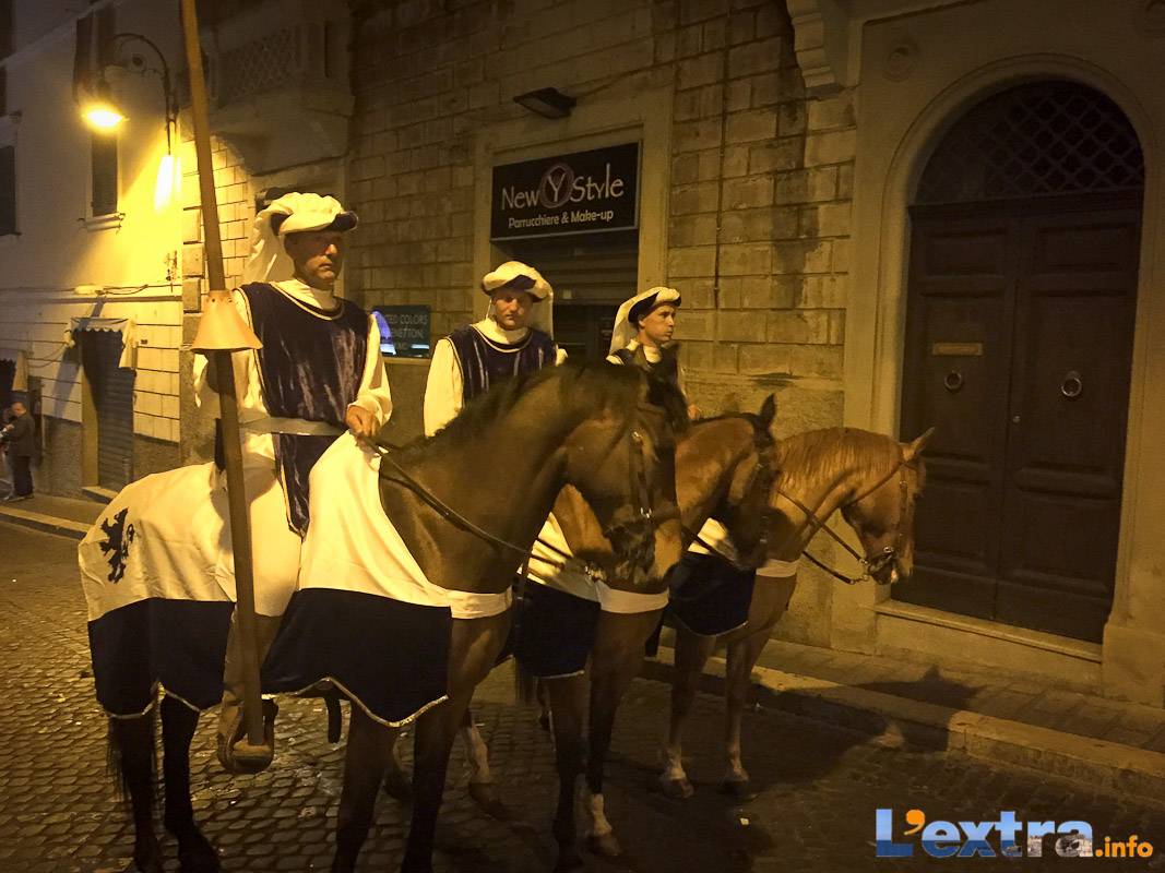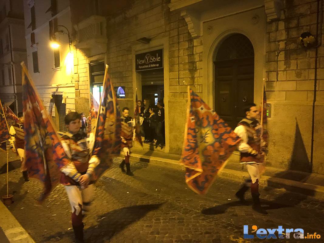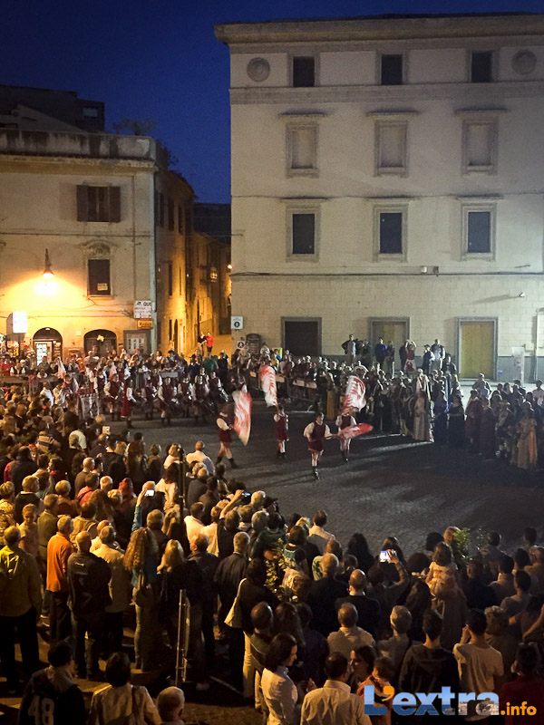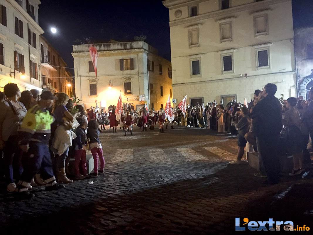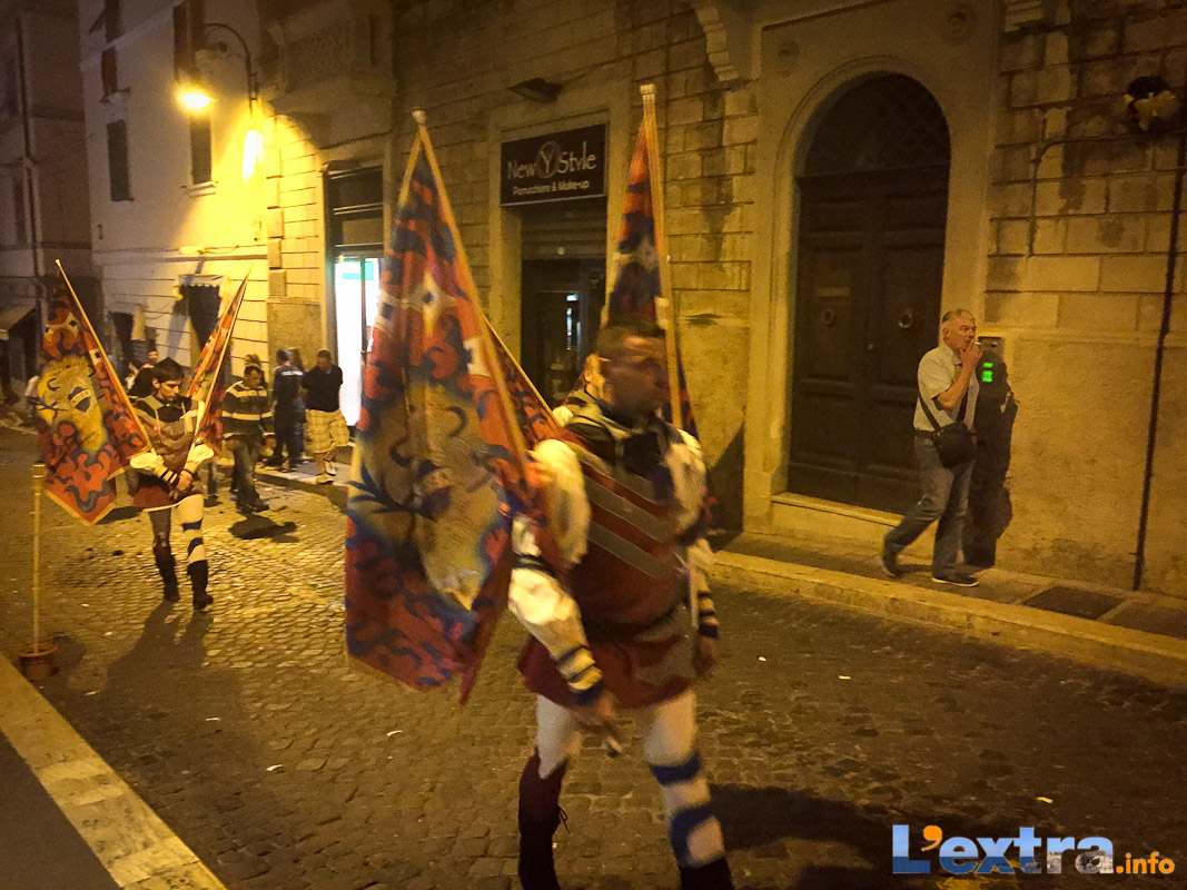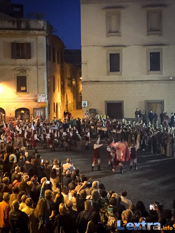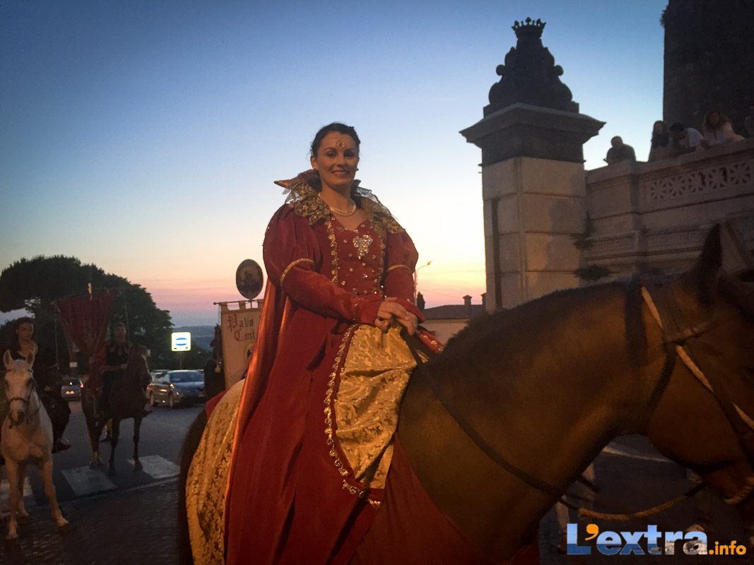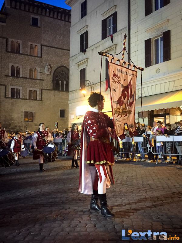 La foto della sfilata che, lunedì 1 giugno, ha animato il centro storico di Tarquinia: trombe, tamburi e bandiere hanno accompagnato dame e cavalieri lungo le vie cittadine, in attesa della Giostra vera e propria, in programma oggi pomeriggio a Campo Cialdi.