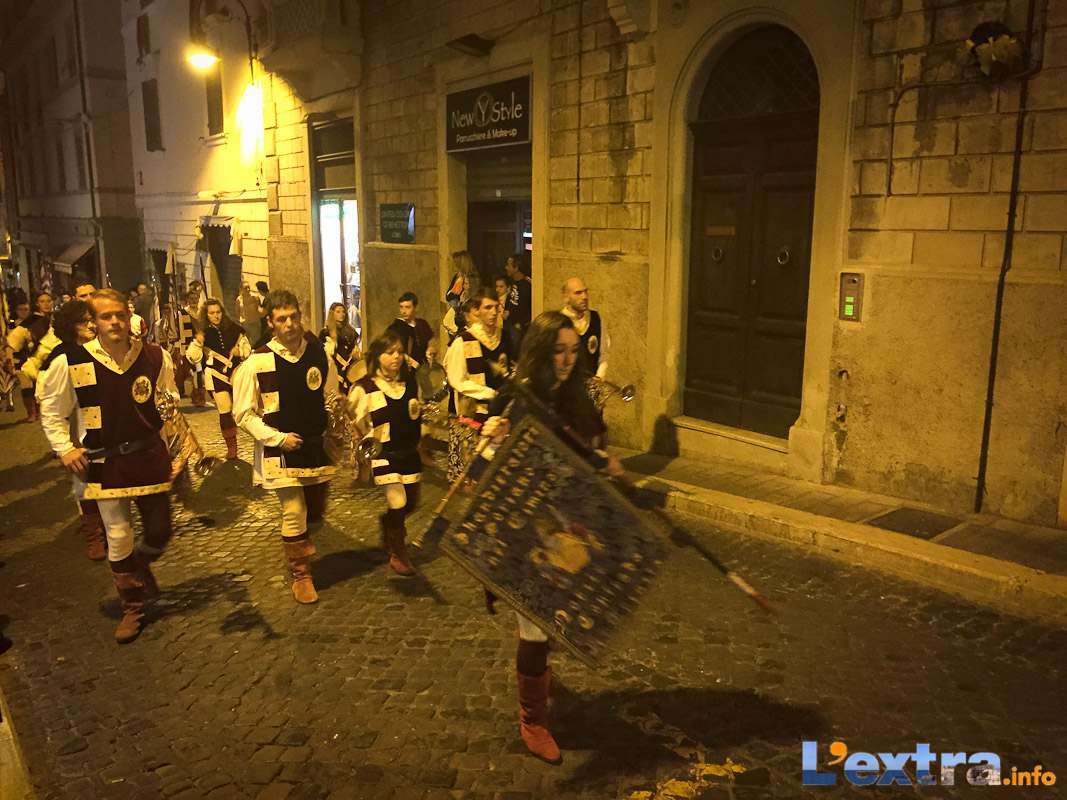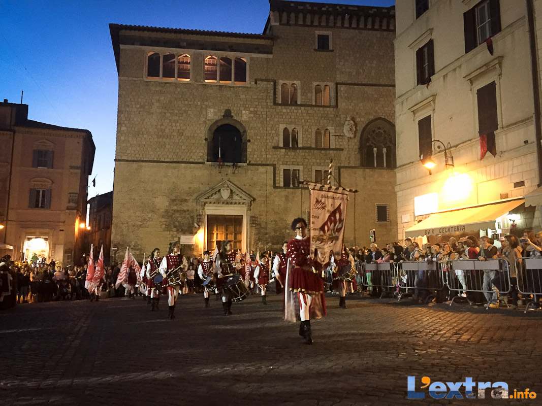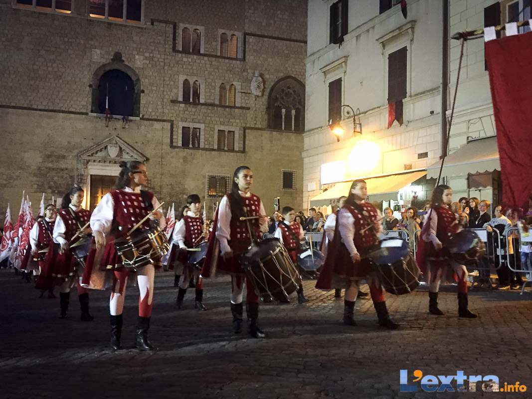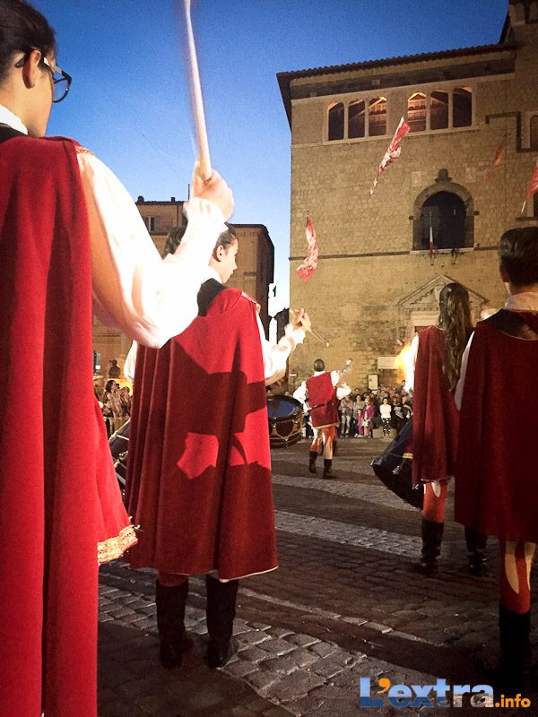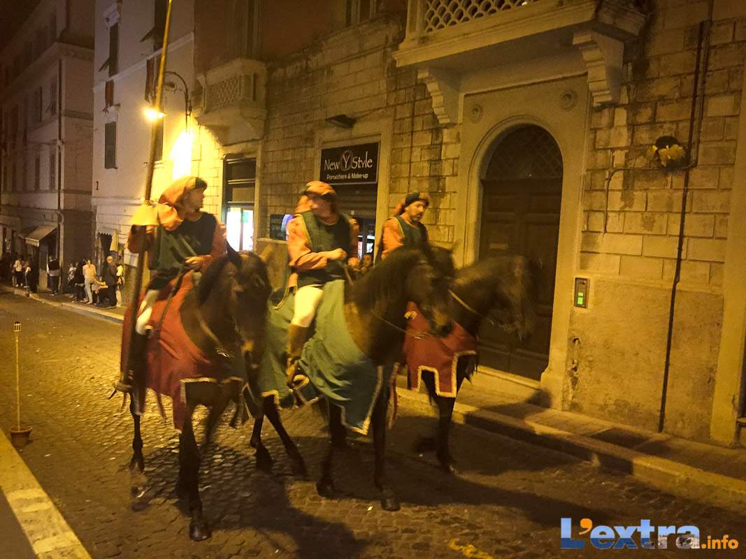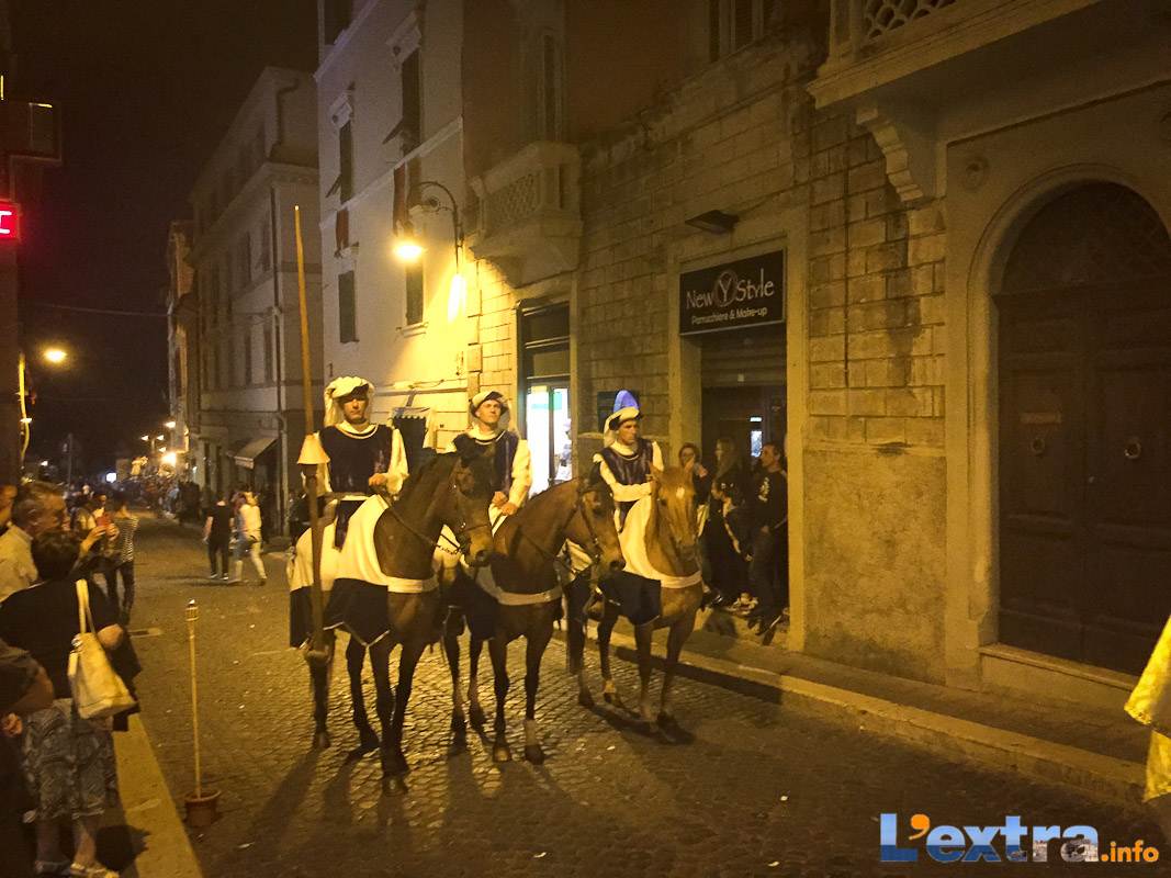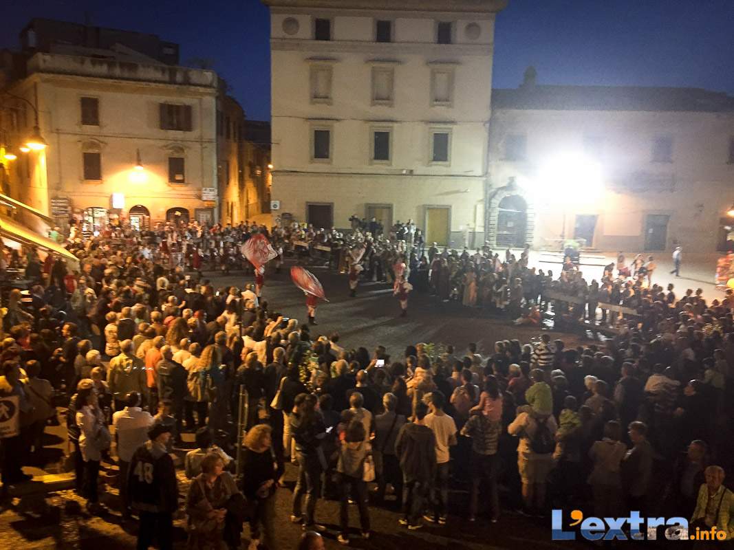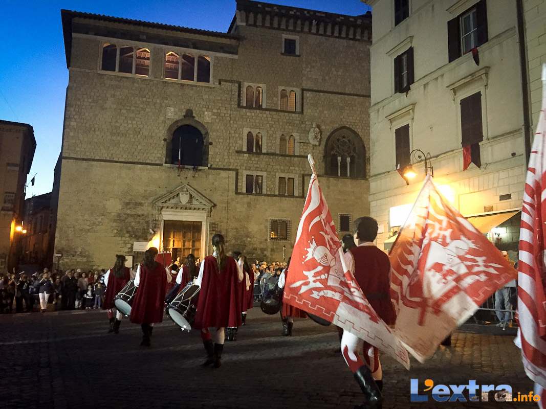 La foto della sfilata che, lunedì 1 giugno, ha animato il centro storico di Tarquinia: trombe, tamburi e bandiere hanno accompagnato dame e cavalieri lungo le vie cittadine, in attesa della Giostra vera e propria, in programma oggi pomeriggio a Campo Cialdi.