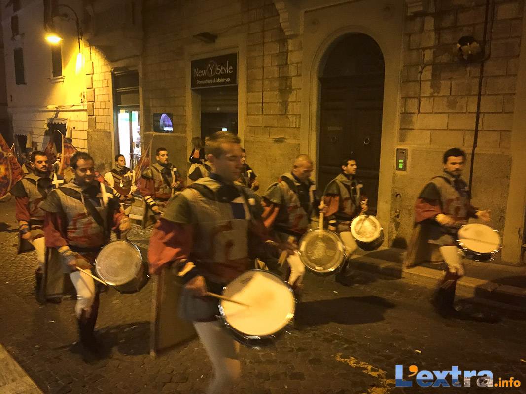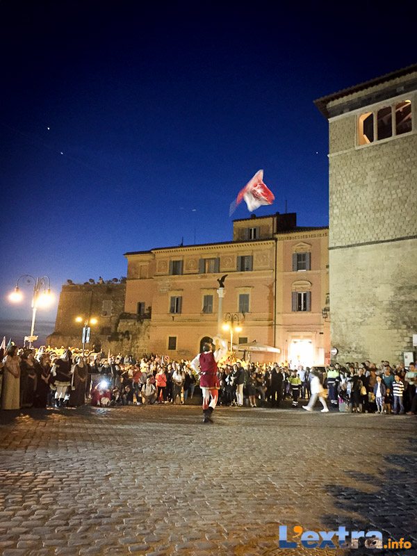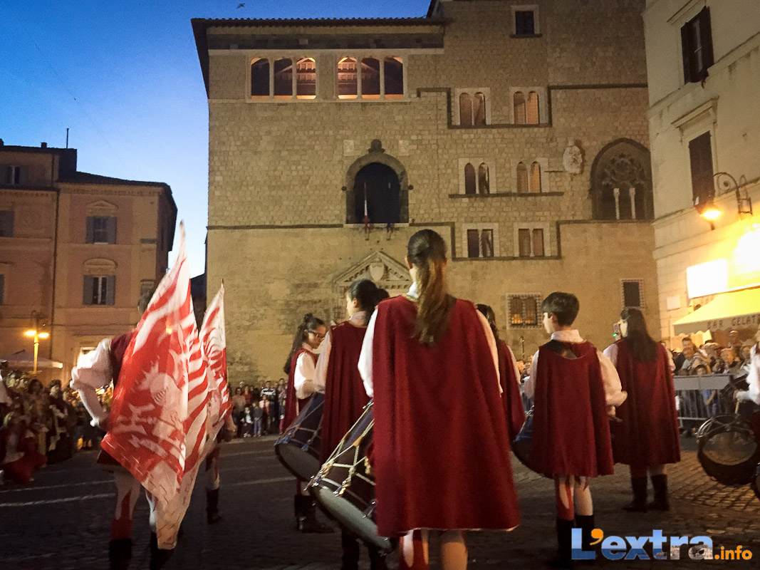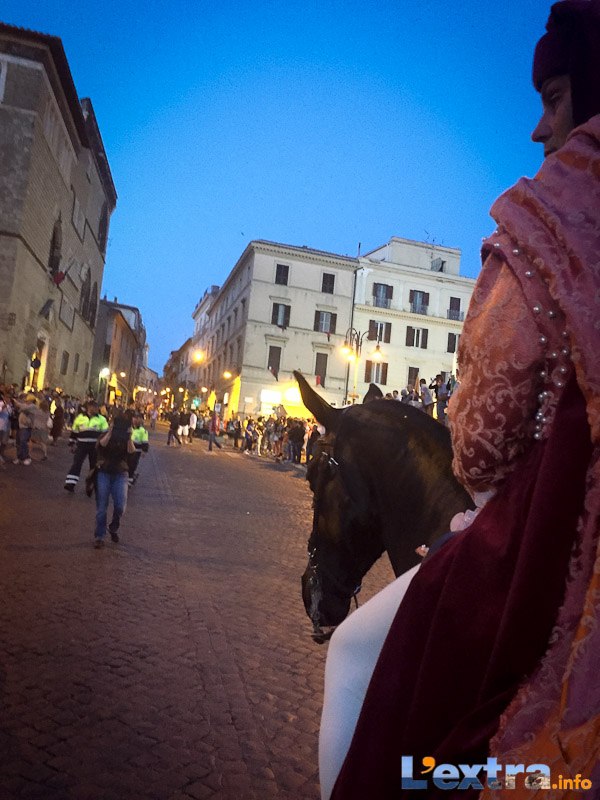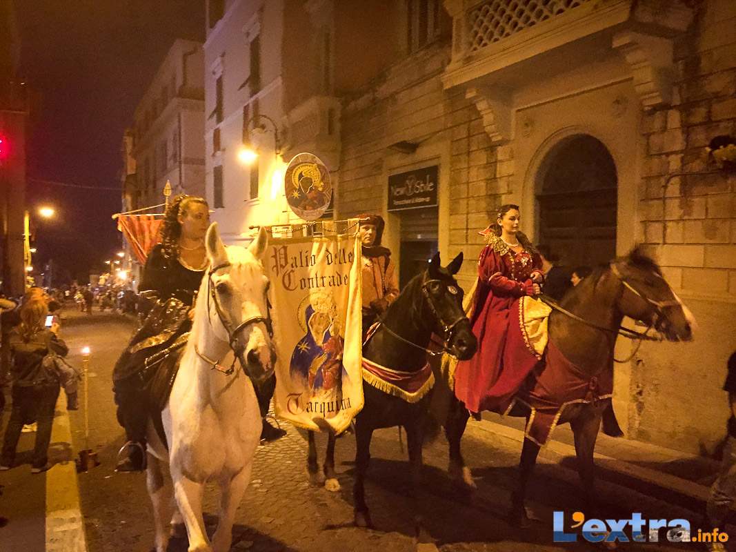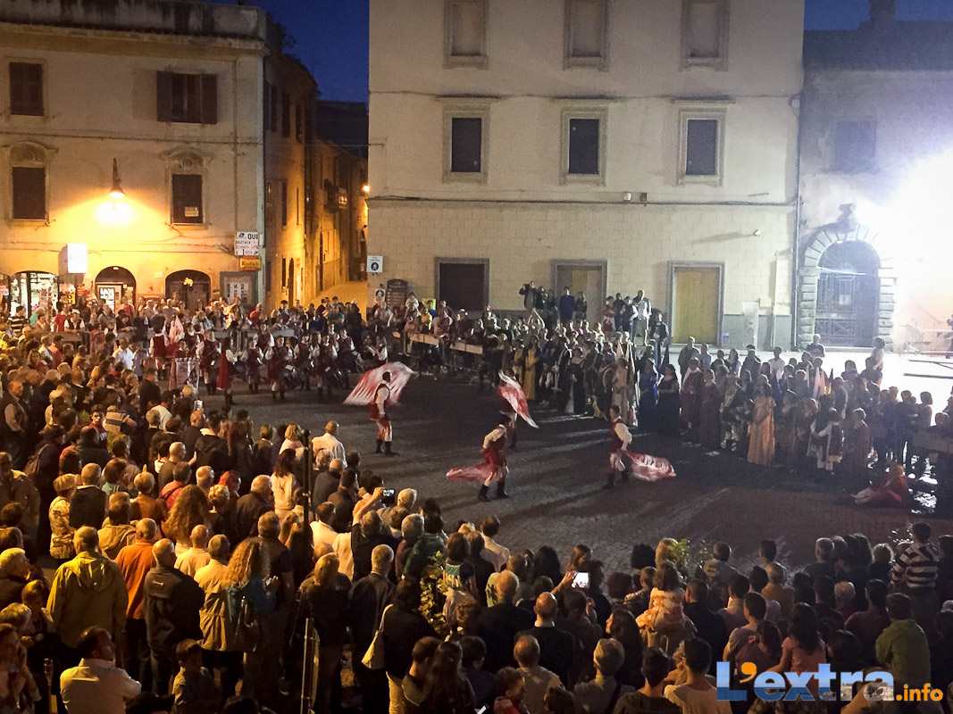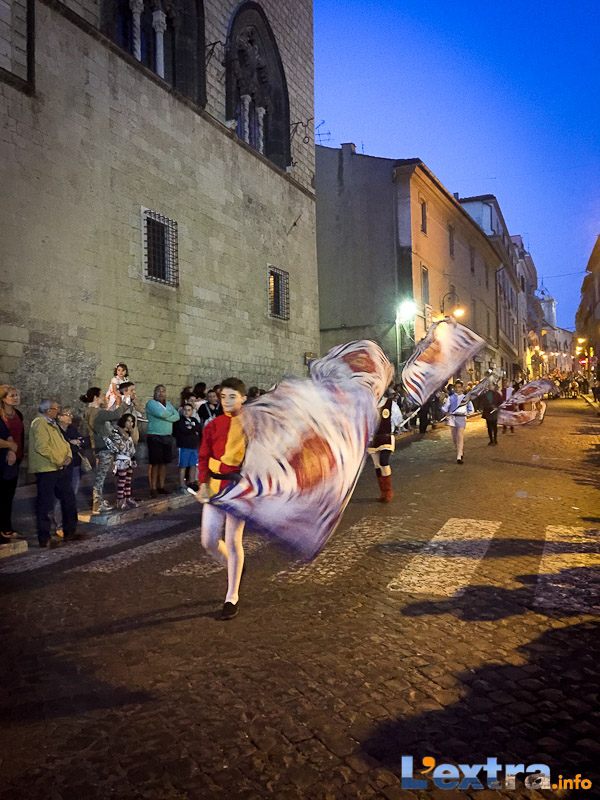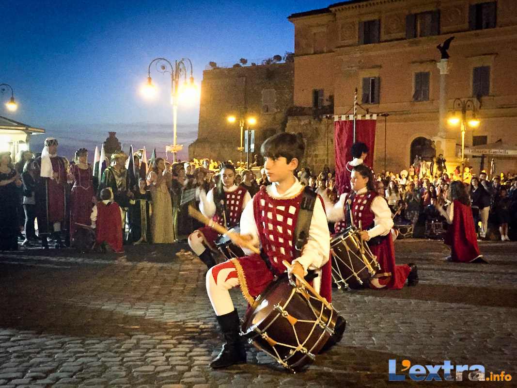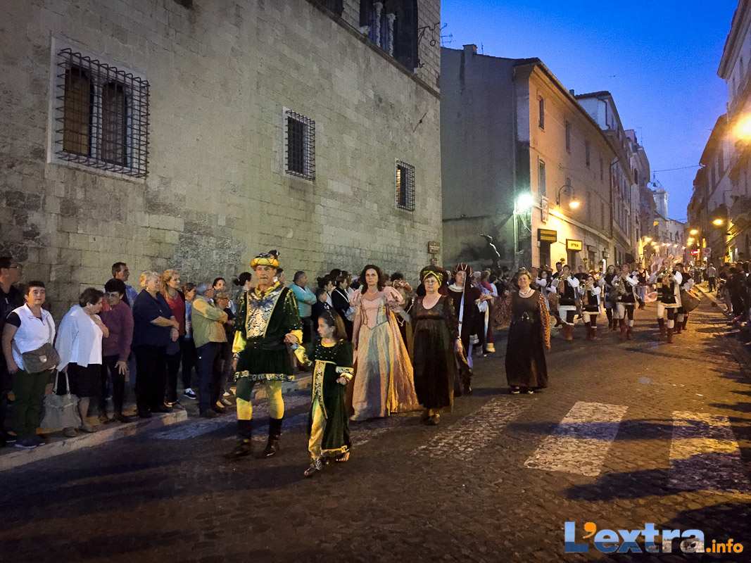 La foto della sfilata che, lunedì 1 giugno, ha animato il centro storico di Tarquinia: trombe, tamburi e bandiere hanno accompagnato dame e cavalieri lungo le vie cittadine, in attesa della Giostra vera e propria, in programma oggi pomeriggio a Campo Cialdi.