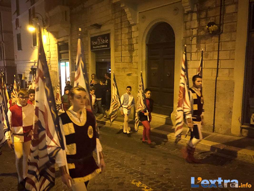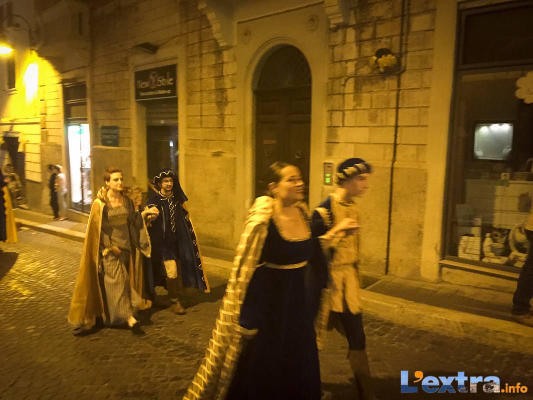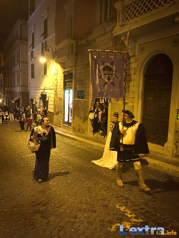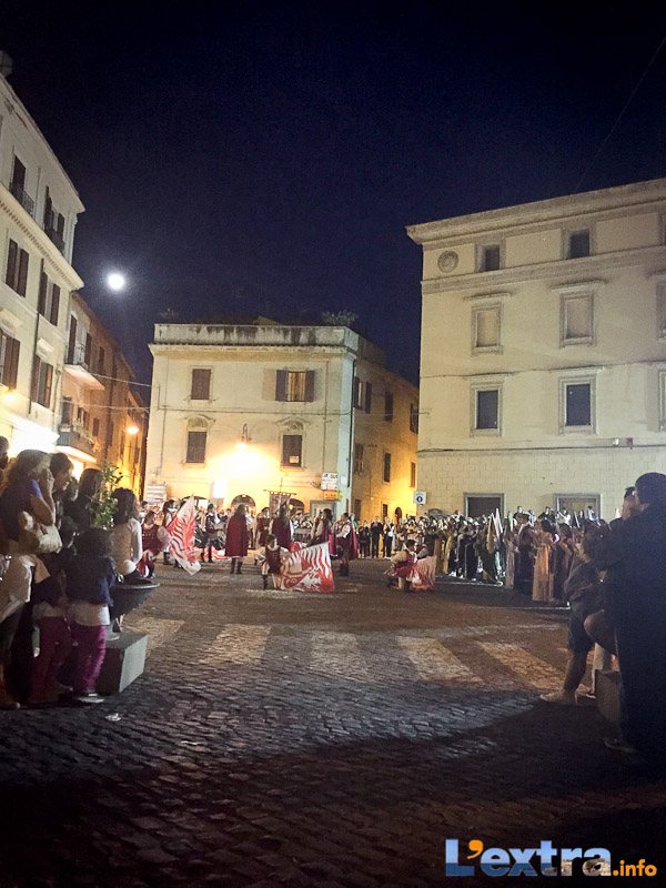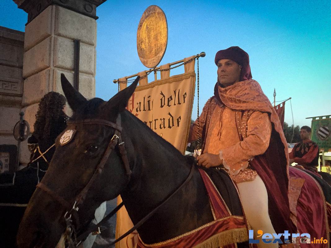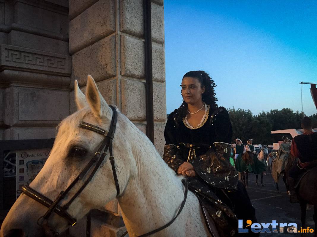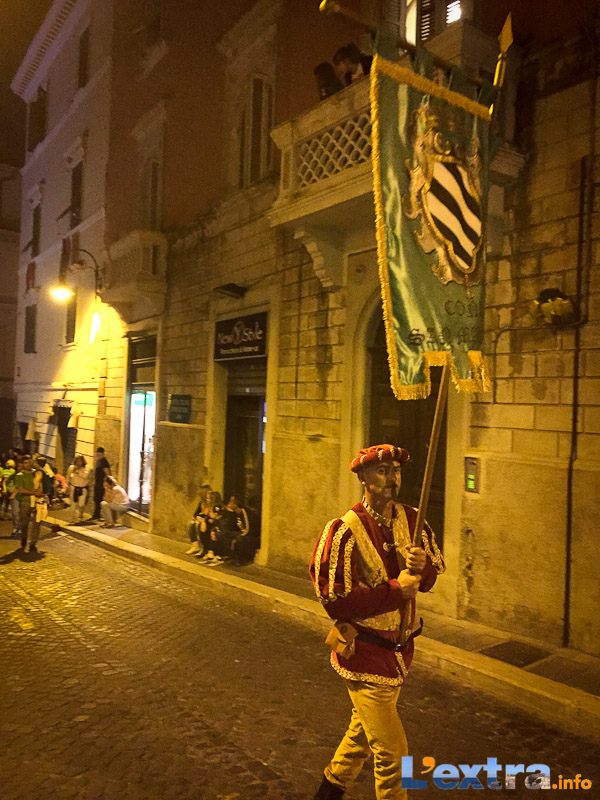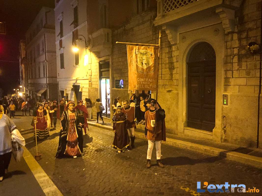 La foto della sfilata che, lunedì 1 giugno, ha animato il centro storico di Tarquinia: trombe, tamburi e bandiere hanno accompagnato dame e cavalieri lungo le vie cittadine, in attesa della Giostra vera e propria, in programma oggi pomeriggio a Campo Cialdi.