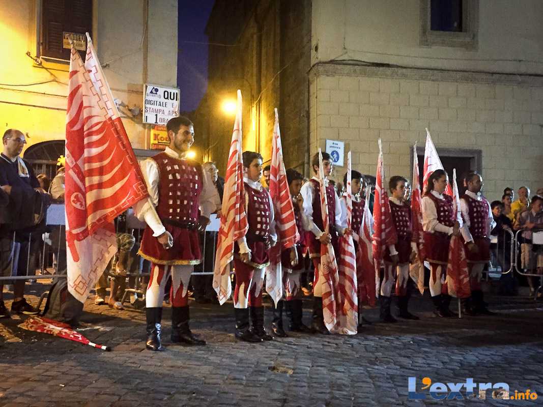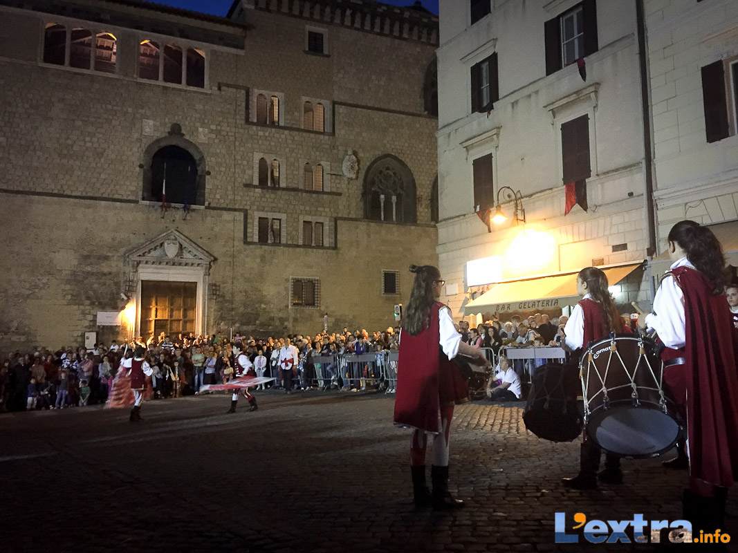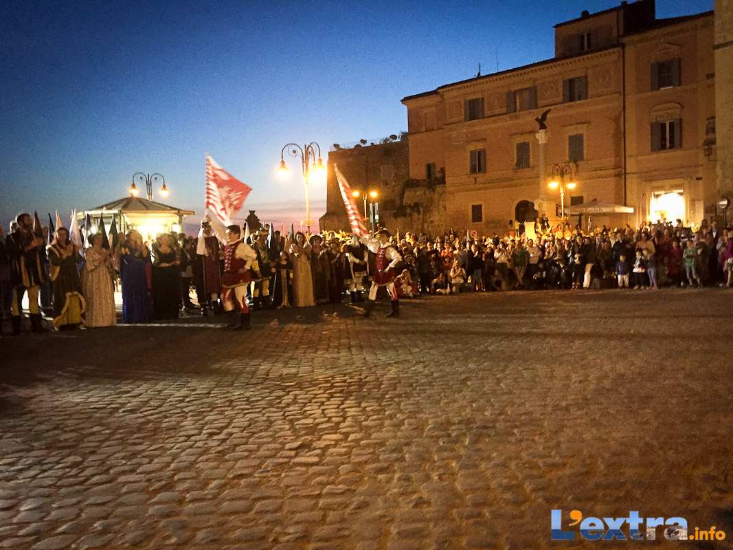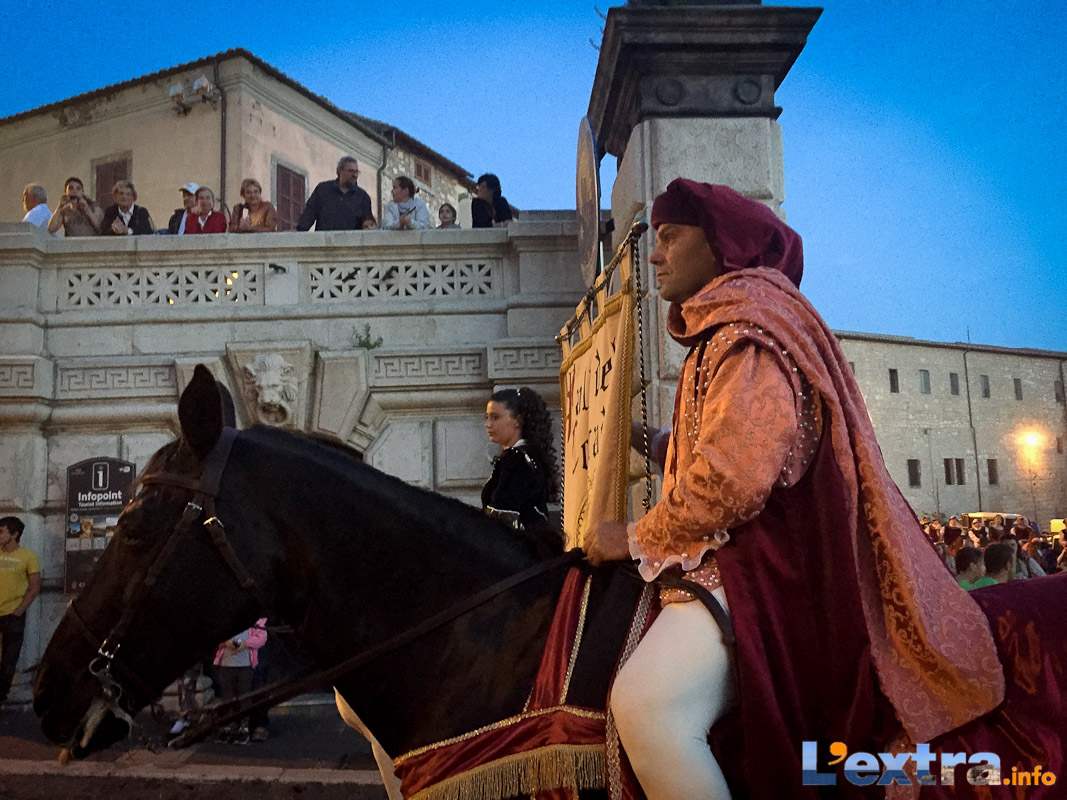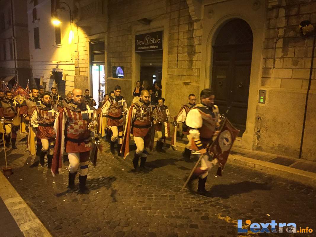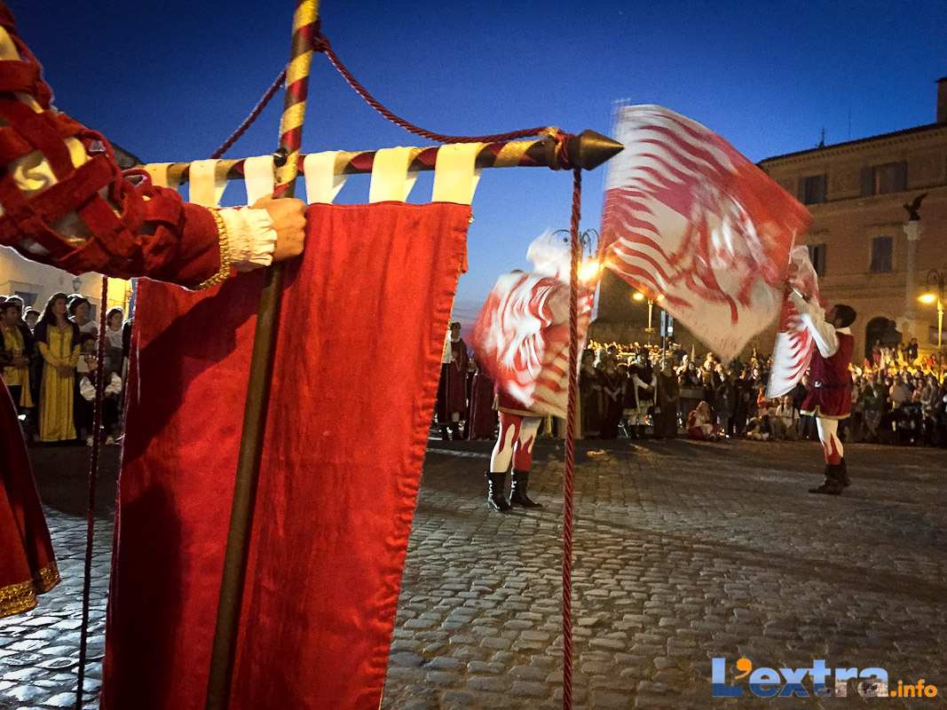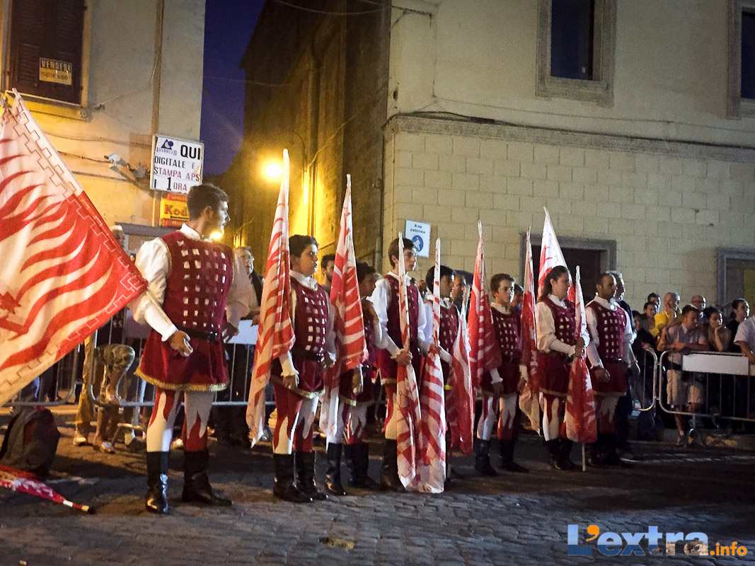 La foto della sfilata che, lunedì 1 giugno, ha animato il centro storico di Tarquinia: trombe, tamburi e bandiere hanno accompagnato dame e cavalieri lungo le vie cittadine, in attesa della Giostra vera e propria, in programma oggi pomeriggio a Campo Cialdi.
