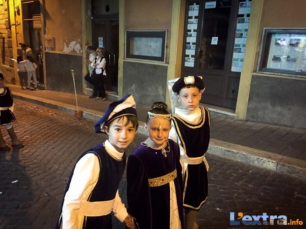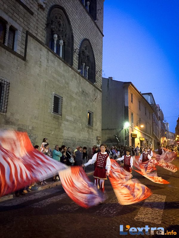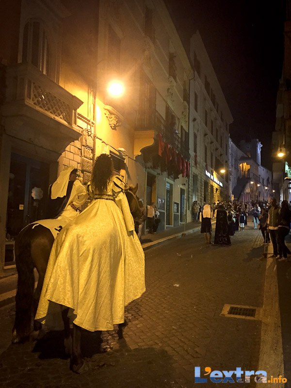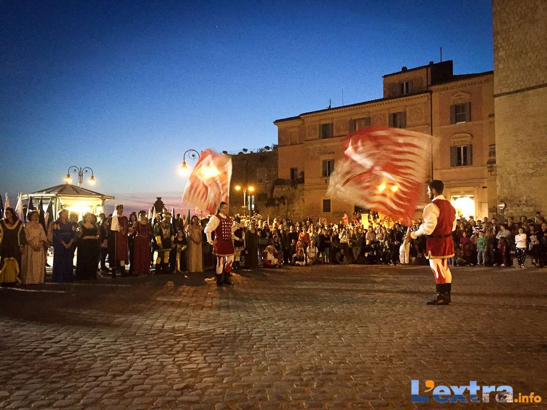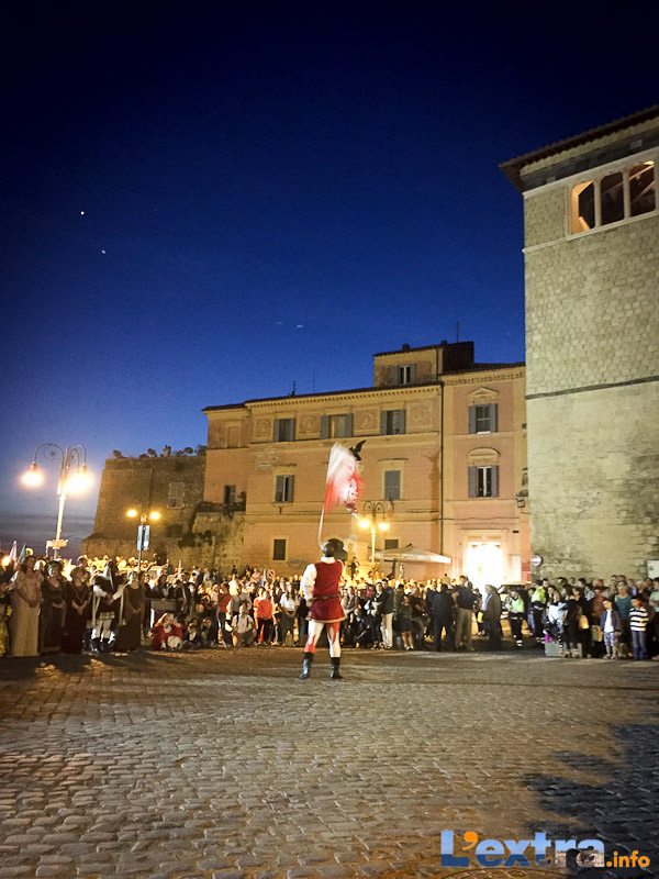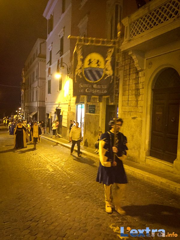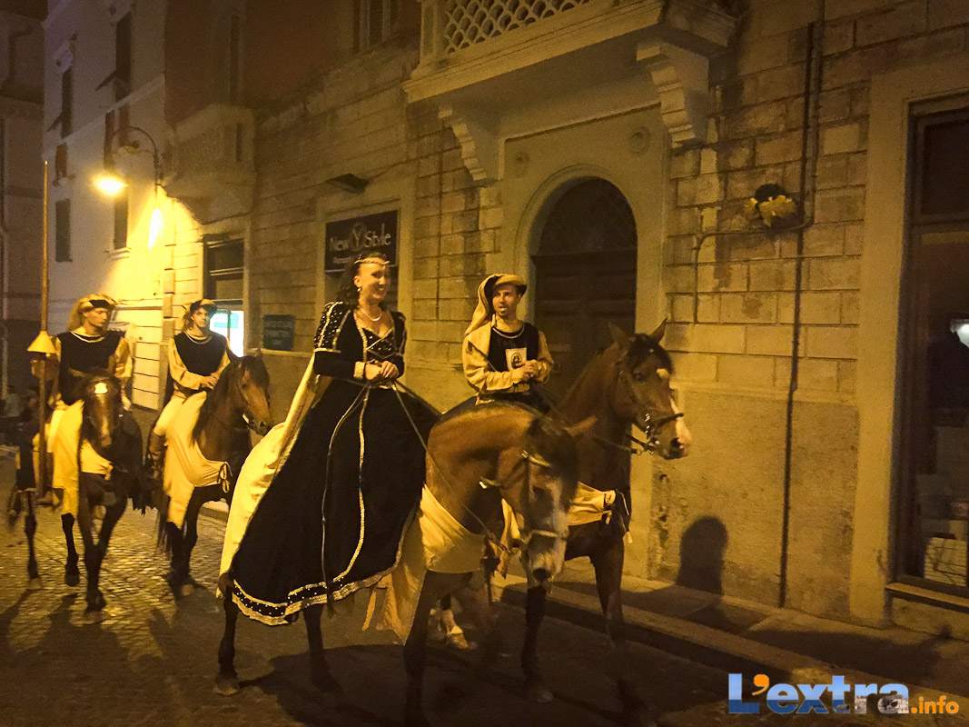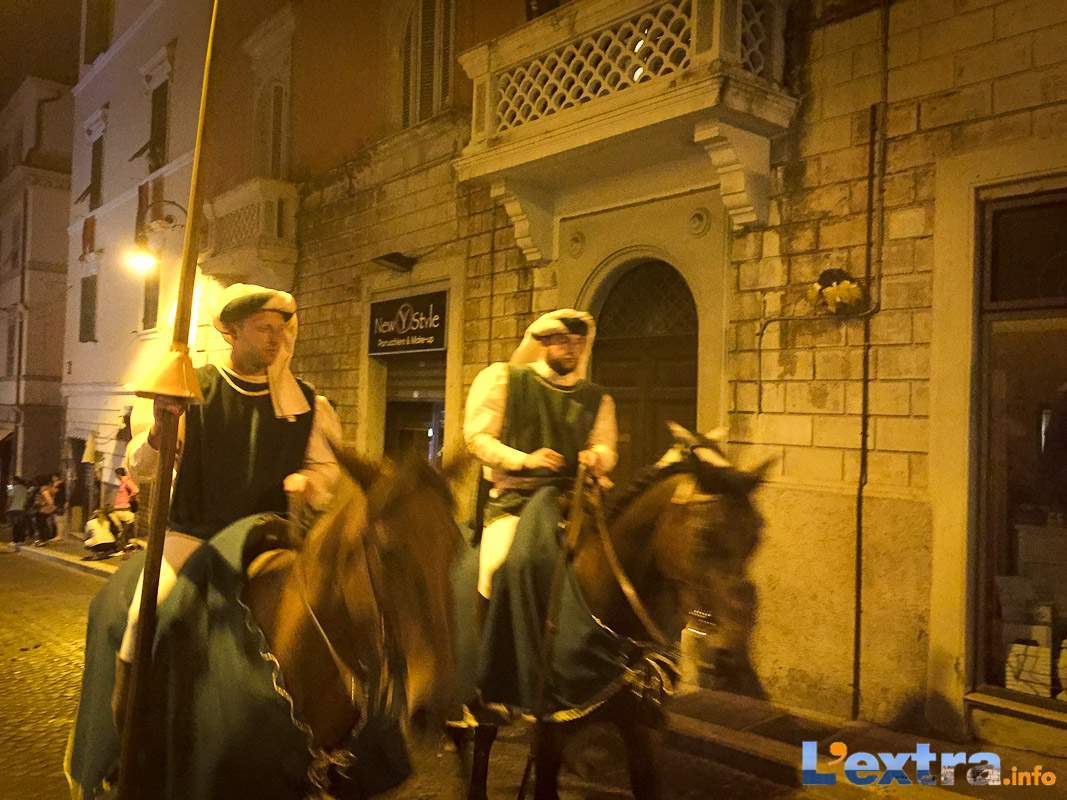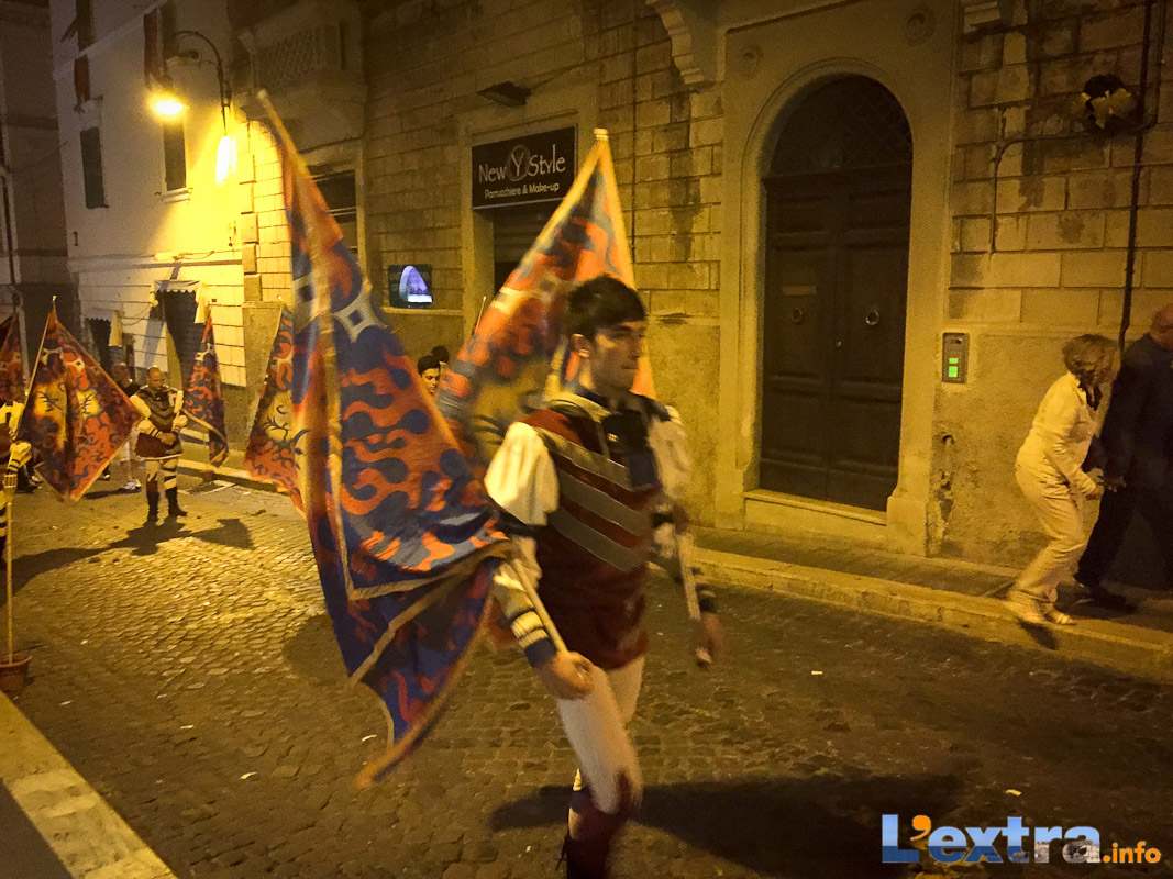 La foto della sfilata che, lunedì 1 giugno, ha animato il centro storico di Tarquinia: trombe, tamburi e bandiere hanno accompagnato dame e cavalieri lungo le vie cittadine, in attesa della Giostra vera e propria, in programma oggi pomeriggio a Campo Cialdi.