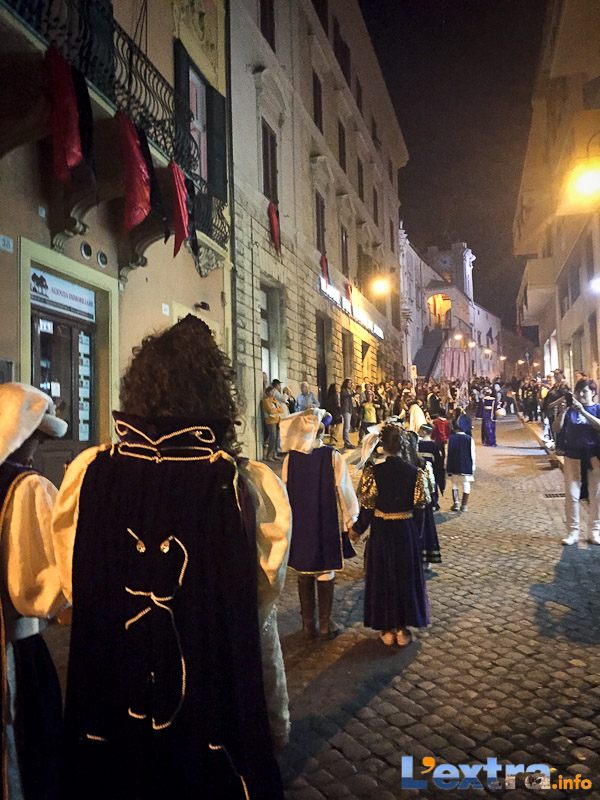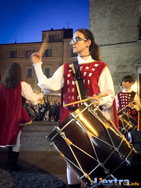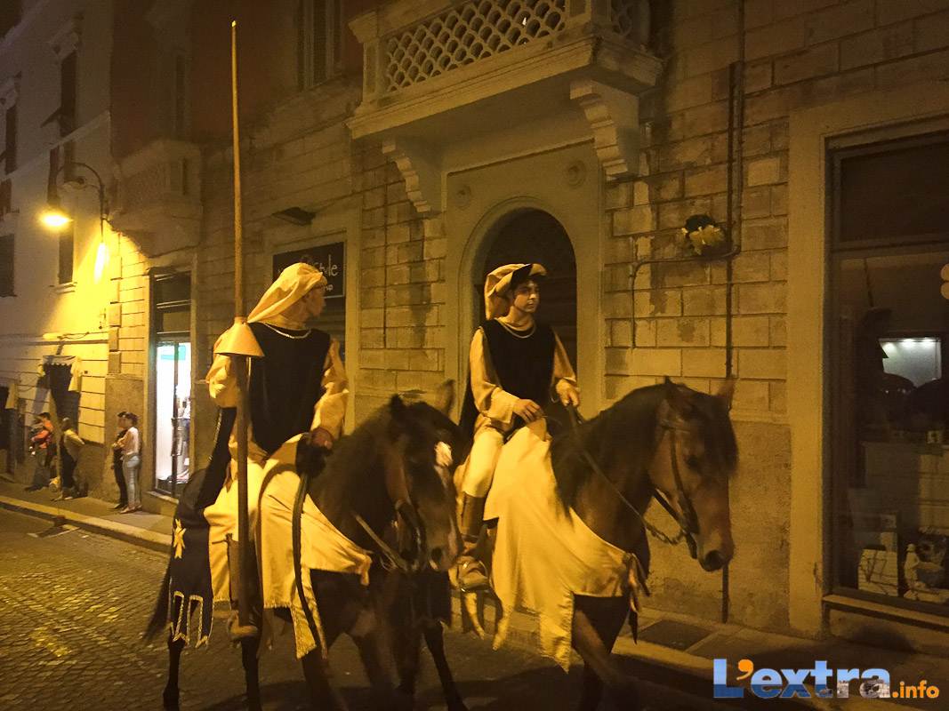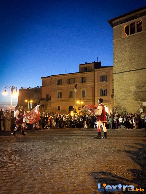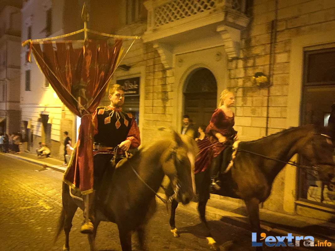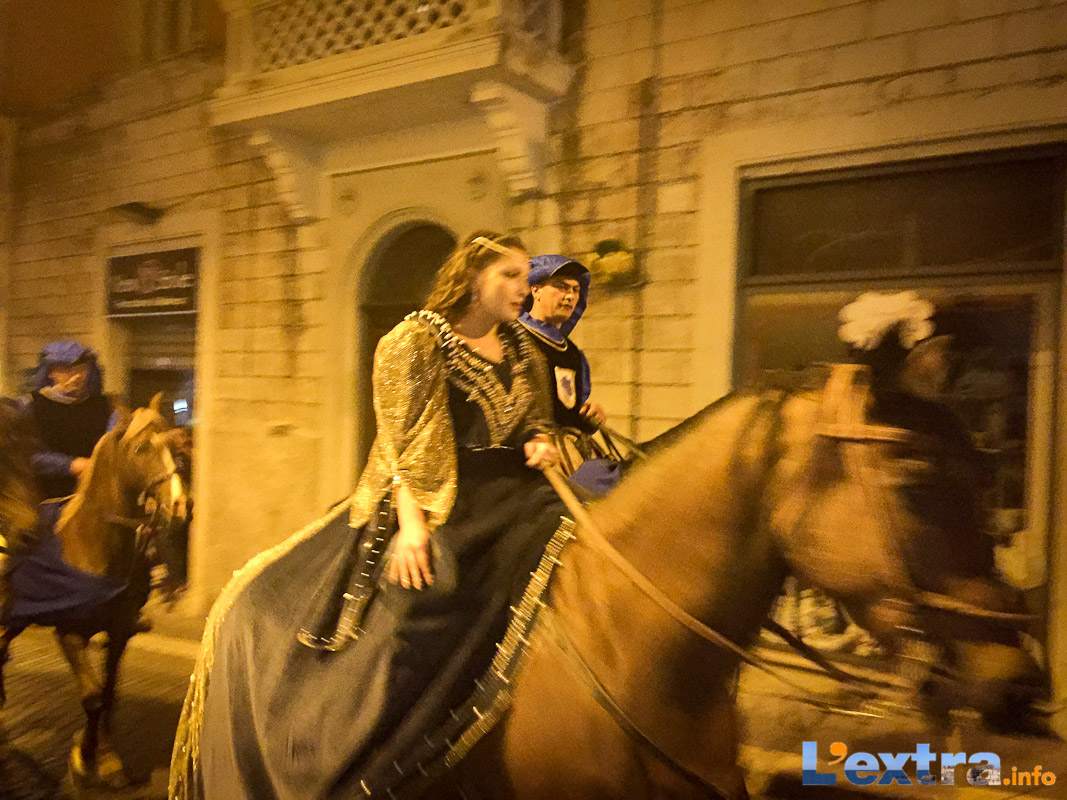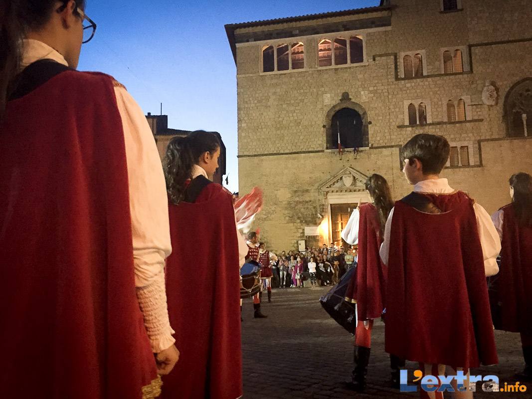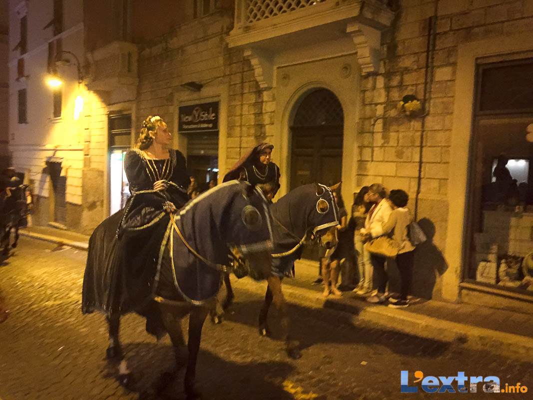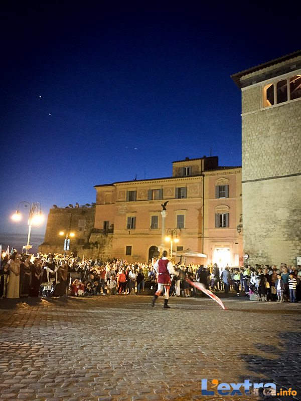 La foto della sfilata che, lunedì 1 giugno, ha animato il centro storico di Tarquinia: trombe, tamburi e bandiere hanno accompagnato dame e cavalieri lungo le vie cittadine, in attesa della Giostra vera e propria, in programma oggi pomeriggio a Campo Cialdi.