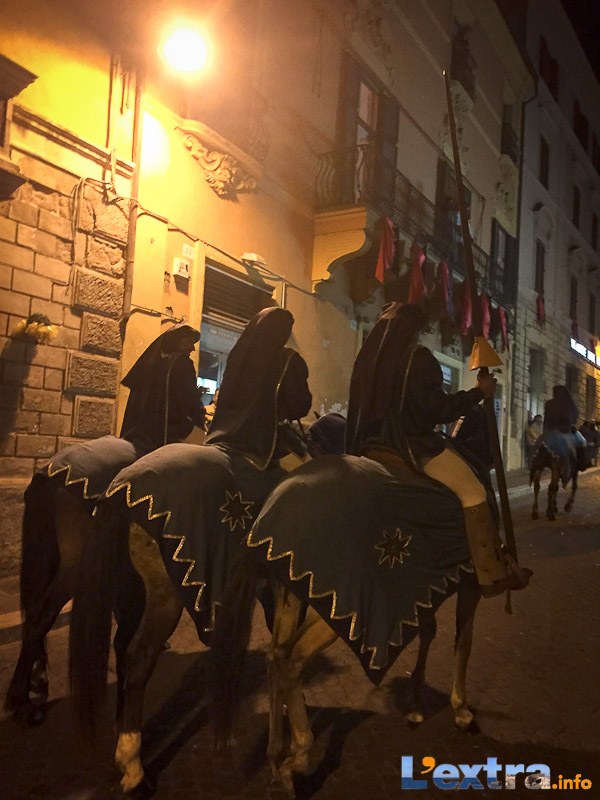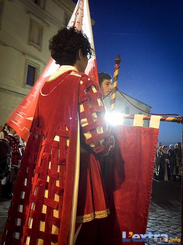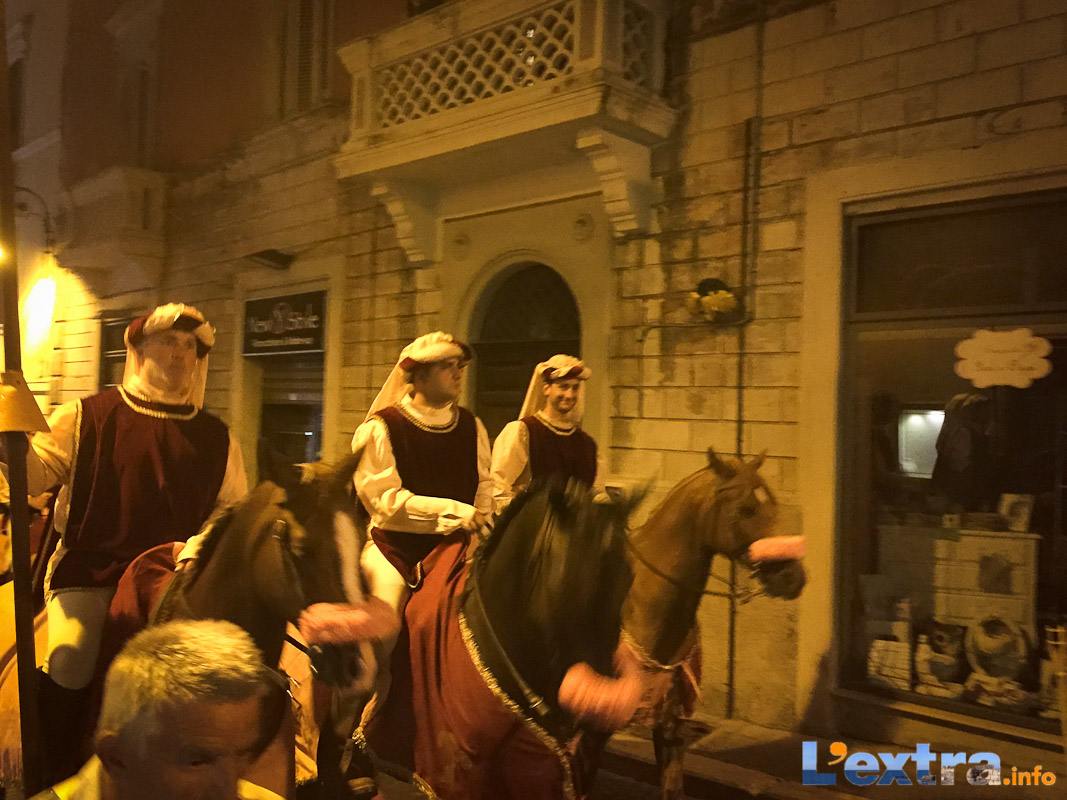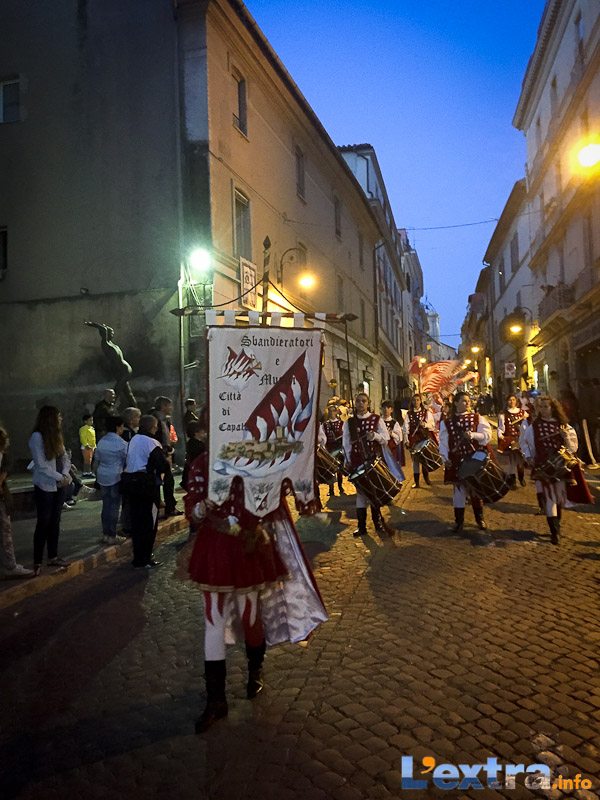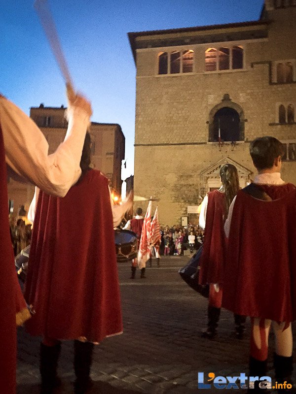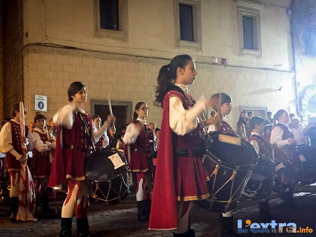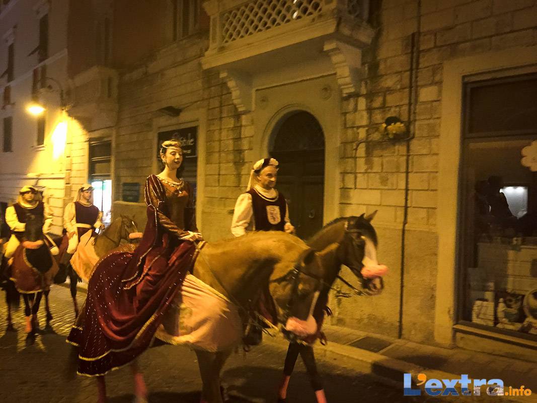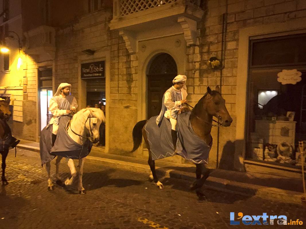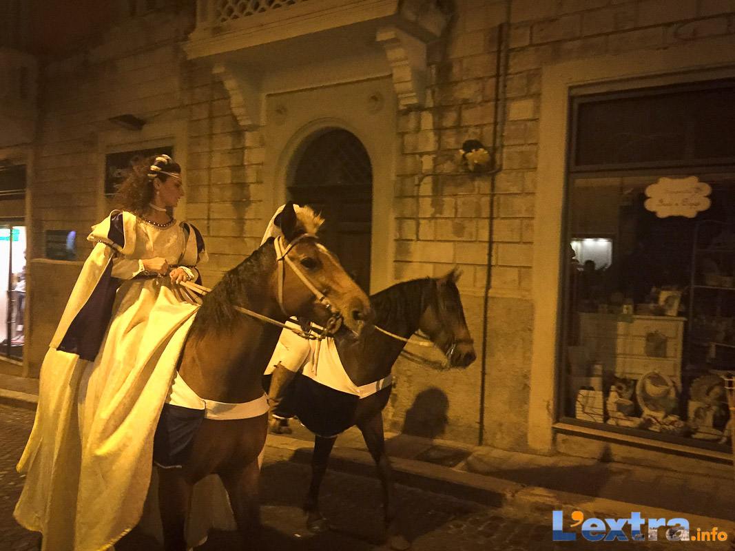 La foto della sfilata che, lunedì 1 giugno, ha animato il centro storico di Tarquinia: trombe, tamburi e bandiere hanno accompagnato dame e cavalieri lungo le vie cittadine, in attesa della Giostra vera e propria, in programma oggi pomeriggio a Campo Cialdi.