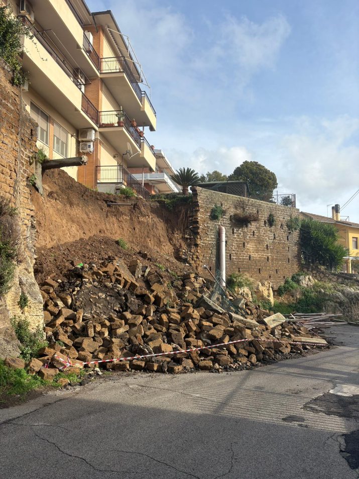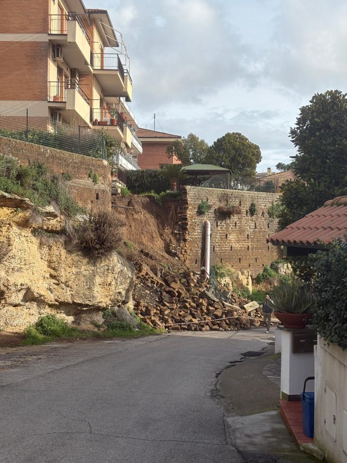 Un crollo si è verificato nella notte a Tarquinia, intorno alle 4.50, in via della Tuscia, nel pieno centro della città: a cedere, ance sotto il peso delle forti piogge della nottata e dei giorni precedenti, è stato il muro di contenimento di una serie di abitazioni, che ha trascinato con sé anche una parte del giardino di una proprietà privata sovrastante, finendo sul tratto di strada senza uscita che raggiunge le abitazioni più in basso. Fortunatamente non si registrano feriti, anche perché al momento del cedimento non transitavano veicoli né passanti nella zona.