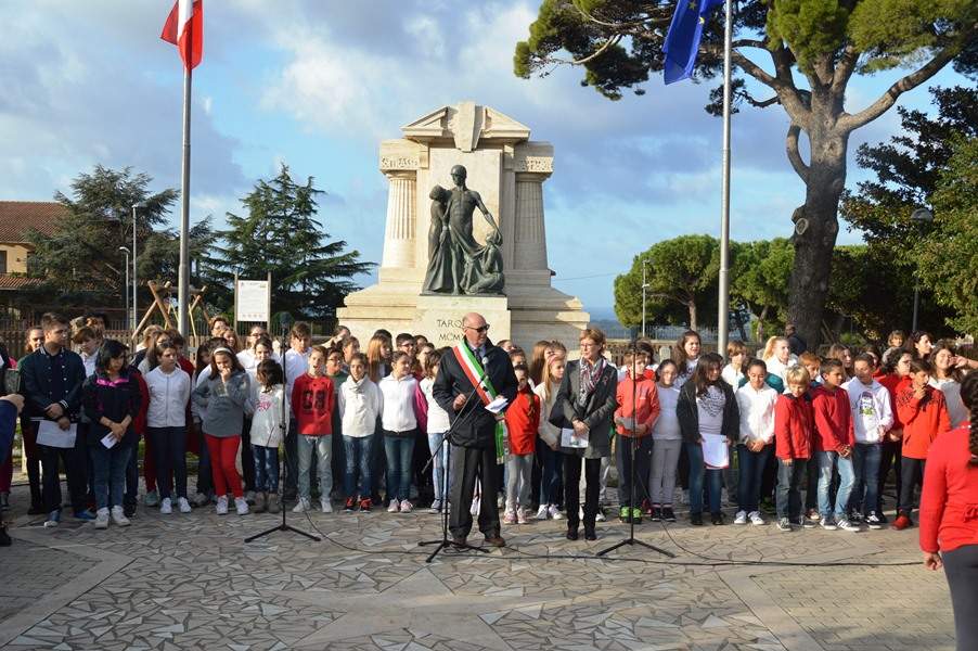«Questa è una data densa di significato che ci ricorda con quanta fatica sia stata raggiunta l’unità d’Italia e il contributo di vite dato dalle nostre forze armate. – ha aggiunto il primo cittadino – Vedere l’entusiamo di centinaia di bambini, che cantano l’inno di Mameli, ricordano momenti storici drammatici leggendo poesie, lettere di soldati dal fronte è motivo di grande soddisfazione e ci riempie di orgoglio. Abbiamo iniziato un percorso anni fa con le scuole, per far avvicinare le nuove generazioni a questo tipo di ricorrenza. Ci siamo riusciti anche grazie, soprattutto, alla collaborazione dei dirigenti scolastici e degli insegnanti che svolgono un lavoro eccezionale». Dopo l’alza bandiera alla scuola elementare “Corrado e Mario Nardi”, le celebrazioni si sono spostate in viale Luigi Dasti, di fronte al monumento dei caduti. Gli studenti sono stati assoluti protagonisti. Hanno letto poesie, lettere dei soldati al fronte, cantato e infine realizzato una splendida coreografia. «Un grazie a tutti gli studenti, che hanno reso emozionante la ricorrenza. – ha concluso il sindaco Mazzola – L’appuntamento è per domenica 6 novembre, cui invito a partecipare i cittadini tarquiniesi».
