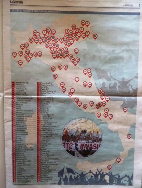 Emergenza immigrazione: nel 2016 si sono svolte in Italia 104 proteste organizzate da comitati locali. Nel viterbese elencate Blera e Tarquinia. Il giornalista Francesco Borgonovo, del quotidiano “La Verita” diretto da Maurizio Belpietro, nell’edizione di oggi, domenica 19 marzo 2017, pubblica un interessante articolo dal titolo “La mappa dell’Italia che rifiuta l’invasione”.