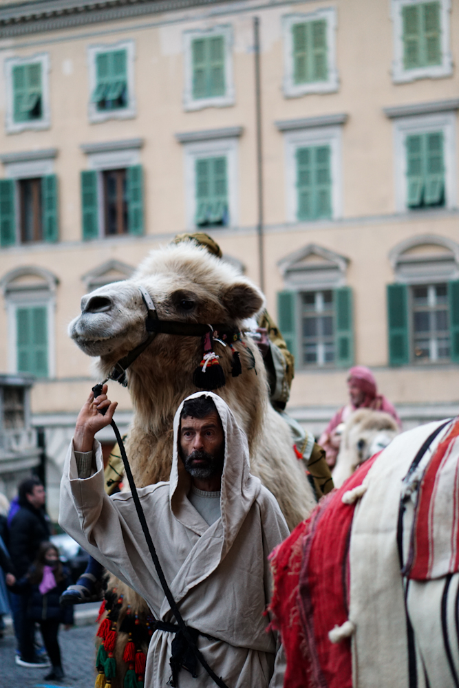 Il giovane fotografo Leone Di Marcantonio immortala l’ultima giornata di Presepe Vivente e l’arrivo a Tarquinia dei Re Magi con i cammelli.