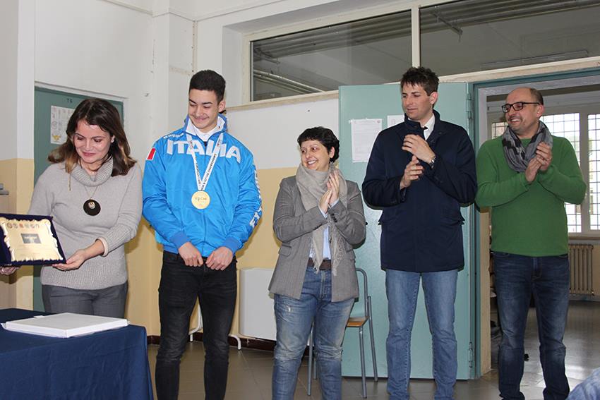 La Dirigente scolastica Laura Piroli, i compagni , gli assessori Manuel Catini, Federica Guiducci e l’assessore allo sport Stefano Zacchini, lo hanno accolto martedì con tutti gli onori nell’Aula Magna della nostra Sede Centrale. Una vera e propria cerimonia a cui hanno assistito commossi i genitori, il fratello, insegnanti, una delegazione nutrita di compagni di vita che Mirko frequenta quando è libero dagli impegni della sua intensa attività agonistica, in giro per il mondo, Indonesia, Giappone, fino in Russia dove è stato acclamato Campione d’Europa nella categoria Kata Junior, grazie alla vittoria in finale contro lo svizzero Yuki Ujihara.