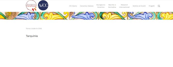 Tarquinia città della ceramica, ma sul sito ufficiale dell’Associazione Italiana Città della Ceramica (AICC) la pagina dedicata alla città etrusca è completamente vuota.