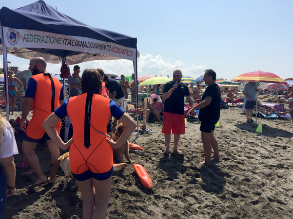 Nel corso della mattinata si è, poi, parlato dell’attività di formazione di assistenti bagnanti, istruttore di nuoto e soccorritore cinofilo, mettendo in mostra alcune simulazioni con l’ausilio delle unità cinofile di soccorso acquatico e del rescue board. Presenti i tre istruttori Fisa Gabriele Leoncelli, istruttore di rescue board – cioè di salvataggio con la tavola da surf -, Gianfranco Proietti, responsabile della delegazione di Viterbo e maestro e istruttore di nuoto – uno dei quattro istruttori nazionali della FISA – e Gino Stella, delegato di zona per le tecniche di salvataggio. Presenti anche gli istruttori cinofili Mario Iannone e Fabiana Anselmi.