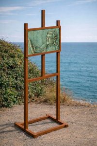 Le saline di Tarquinia sono il luogo del cuore di Brian, lo erano e noi vorremmo che lo fossero ancora trovando lì, tra un cespuglio e l’altro in vista dell’orizzonte marino, un posto appropriato per posizionare questa piccola opera che lo ricorda. La struttura progettata consiste in un manufatto in acciaio corten riproducente un cavalletto da pittore su cui è fissato un bassorilievo in bronzo raffigurante Brian Mobbs al lavoro.