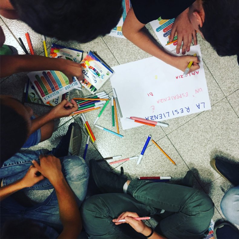 Forti degli input ricevuti e sulla scorta della loro personale esperienza, i ragazzi hanno potuto così elaborare un proprio, originale decalogo della resilienza: suddivisi in gruppi ed armati di carta e colori, hanno realizzato dei cartelloni, ciascuno con un motto che raccontasse, a modo loro, il concetto di resilienza.