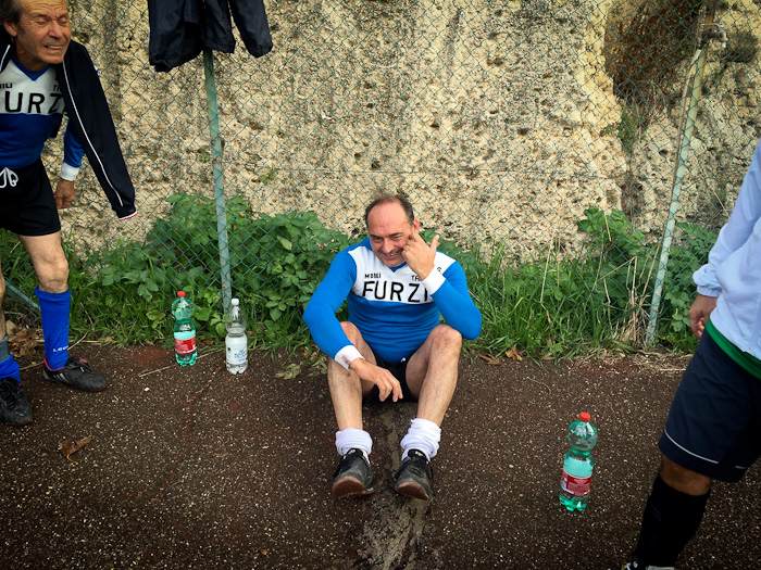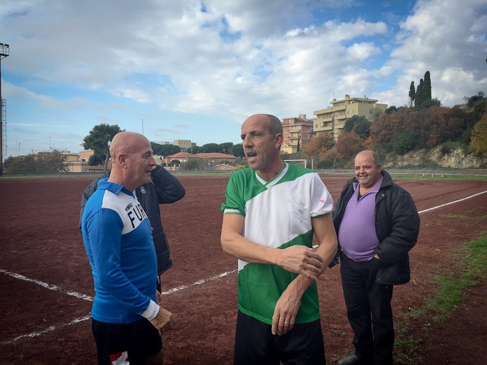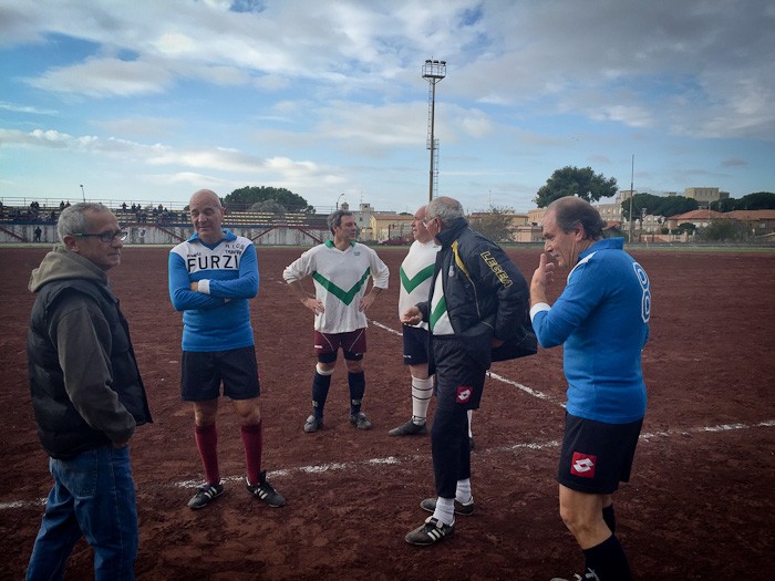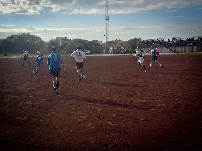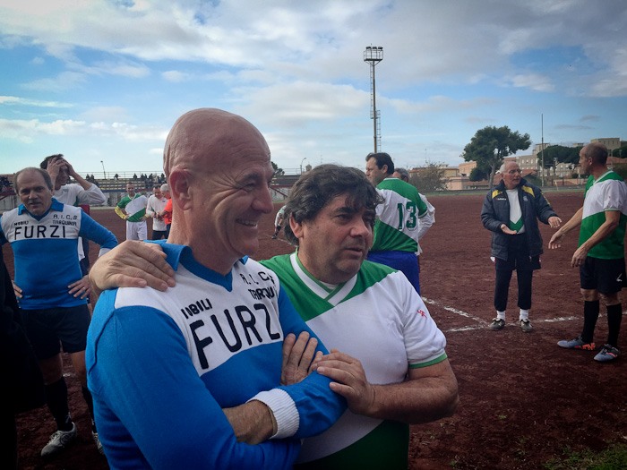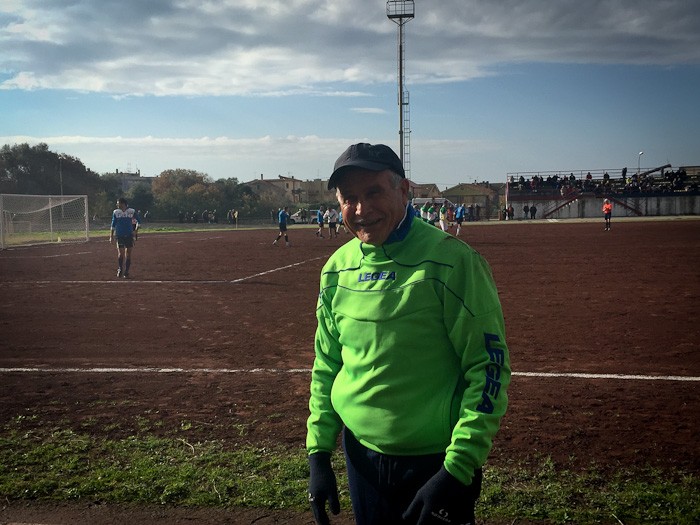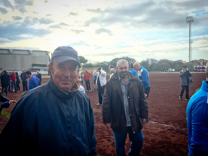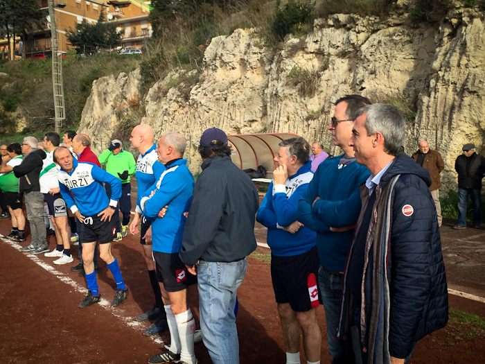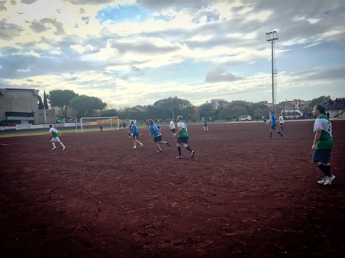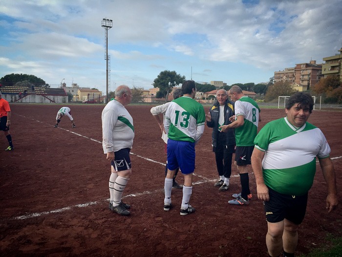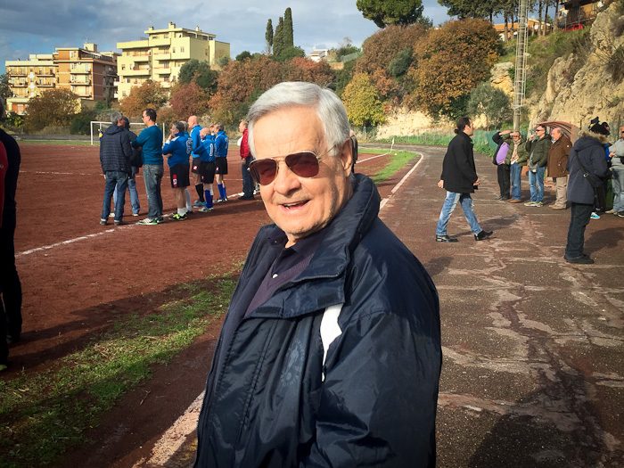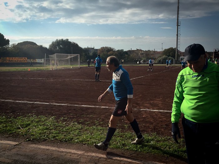 E così al fischio di inizio dell’arbitro Massimo Casali, si sono affrontate almeno tre generazioni a confronto. Dal 76enne Giuliano Bastari, storica bandiera del Tarquinia e del Pianoscarano, al più giovane della truppa Mario Alberto Seripa tutti hanno voluto rendere omaggio alla memoria del grande Angelo. E così con l’ironia che l’ha sempre contraddistinto oggi avrebbe dato qualsiasi cosa per dirigere dall’esterno quei giocatori che per lui hanno dato tanto. E così tra qualche indicazione cervellotica di mister Senigagliesi, condita da qualche fuorigioco fantozziano chiamato da Manfredi Sabbatini, poi avanzato a centrocampo un po’ per disperazione, qualche liscio alla Caria o qualche dribbling di troppo di Carlo Cecchelin ed una splendida parata del gatto Felici, tutti alla fine hanno dato vita ad una splendida giornata calcistica.