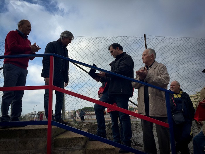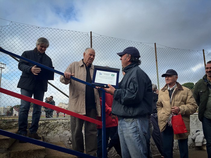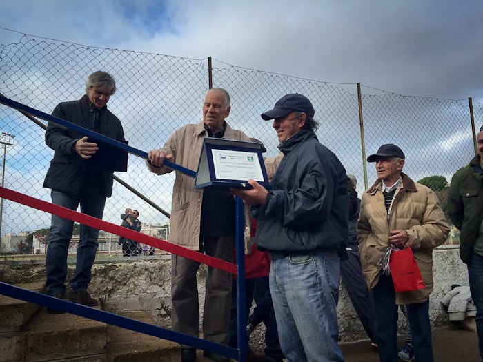 “Mi ricordo – spiega Manfredi Sabbatini ricordando uno dei suoi tantissimi aneddoti – che quando vincevamo 1 a 0, tirava una riga per terra e strillava “Chi supera questa linea lo pisto!”. E Franco Trippanera sottolinea come “Angelo oltre ad essere stato un grande personaggio, ha tolto dalla strada tantissimi ragazzi della mia generazione. Un merito enorme”. Toccante anche il ricordo di Sandro Celli: “Il ricordo di Angelo è vivo ancora in tutti noi, come allenatore che ha fatto la storia del calcio dilettantistico a Tarquinia. La sua passione e la sua simpatia ha coinvolto intere generazioni: uno dei personaggi più rappresentativi e amati dello sport tarquiniese, e la partecipazione di oggi lo testimonia. Tanta gente ha sentito oggi la voglia di dire un grazie ad una persona che ha fatto tanto”.