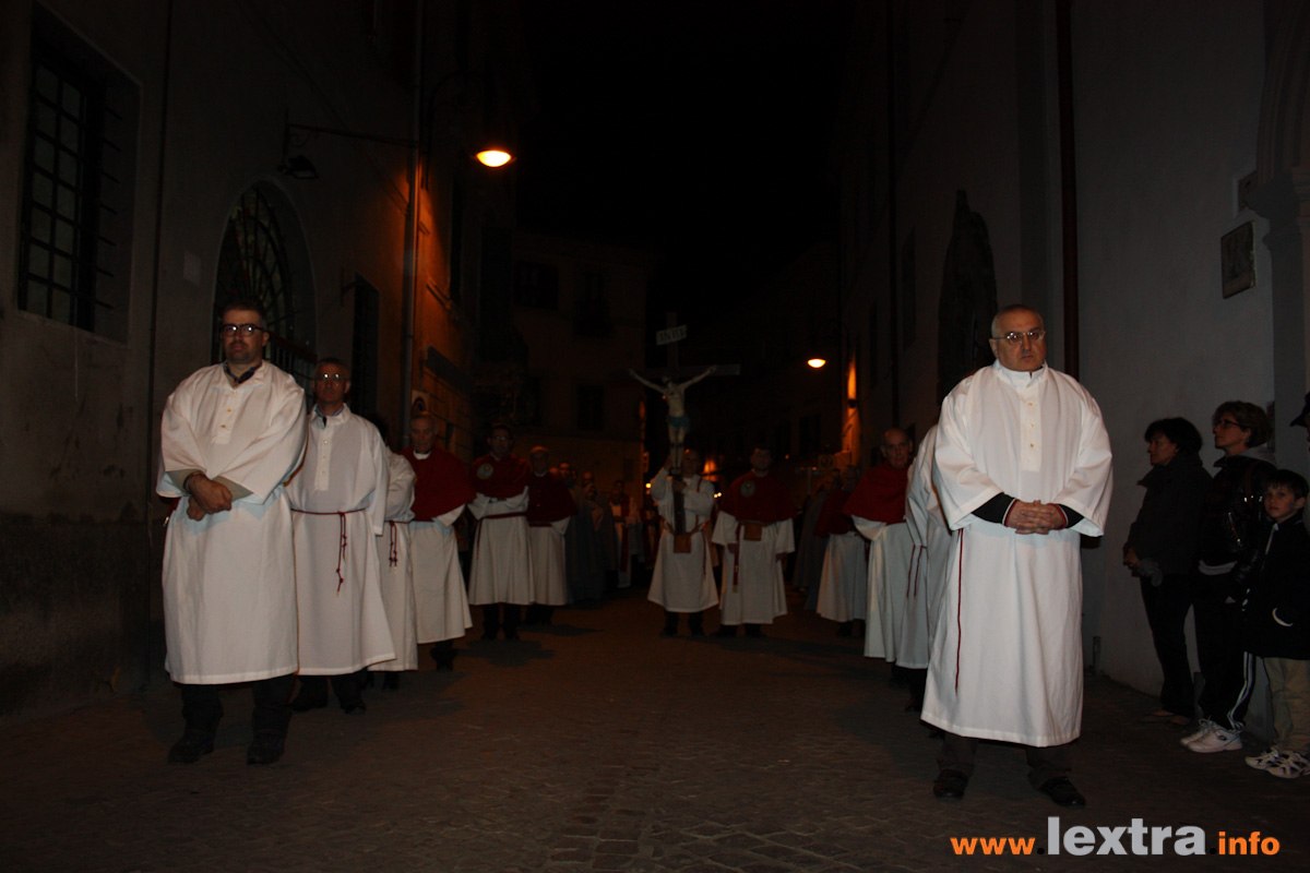 Nell’attesa del grande evento di domenica, con la Processione del Cristo Risorto, Tarquinia vive la settimana santa: dopo i Sepolcri del Giovedì, il Venerdì Santo ricorda la Passione di Cristo con la processione che vede sfilare, a lutto, le croci che a Pasqua correranno in festa.