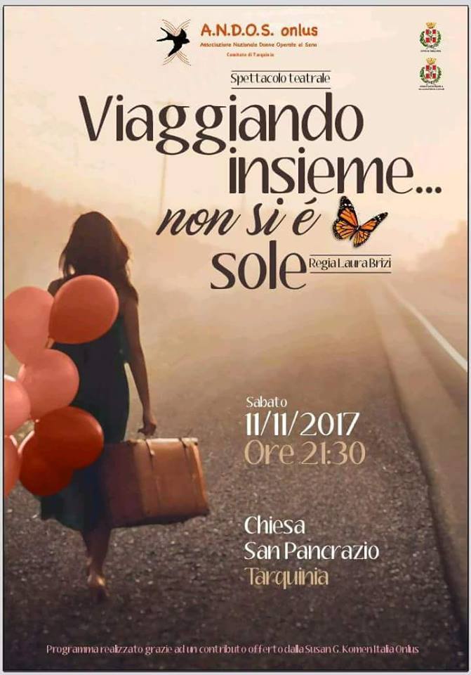 Sarà messo in scena sabato 11 novembre, alle ore 21 e 30, presso l’auditorium nella ex chiesa di San Pancrazio, a Tarquinia, lo spettacolo teatrale “Viaggiando assieme non si è sole”.