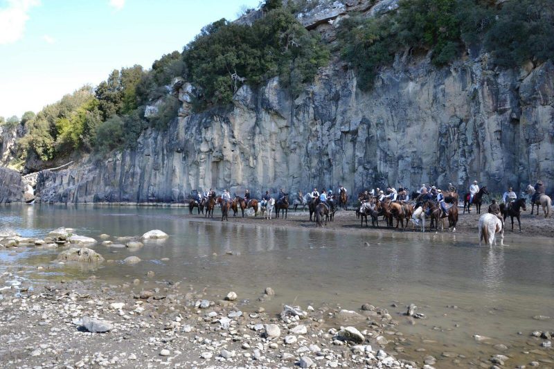 Una cinquantina tra butteri e appassionati del mondo equestre si sono dati appuntamento nei pressi del maestoso castello dell’Abbadia, che ospita il museo nazionale etrusco, per iniziare a percorrere il sentiero insieme alla guida equestre della Fondazione Vulci. Il corteo ha attraversato l’antico ponte etrusco-romano per poi raggiungere una delle perle del luogo: la Cuccumella, il più grande tumulo di tutta l’Etruria con il suo diametro di circa 65 metri ed un’altezza intorno ai 18 metri. Un’altra affascinante tappa ha interessato la necropoli orientale, a pochi passi dalla imponente tomba François, dove uomini e cavalli hanno attraversato il fiume Fiora. Il sentiero ha poi portato il gruppo al laghetto del Pelicone, location che ospita importanti produzioni cinematografiche. La giornata si è poi conclusa presso il ristoro con i piatti tipici locali che caratterizzano questa parte dell’Etruria meridionale.